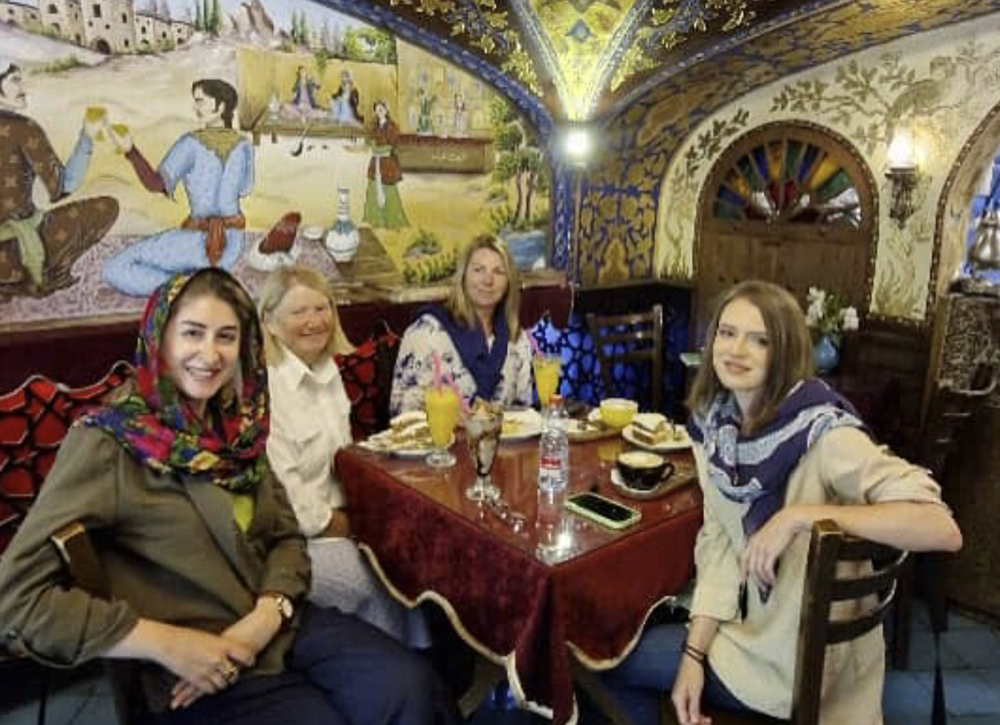 "Beauty salon day!! A few women wanted a freshening up and I wanted to be in a women’s only space behind closed doors so off we went. Best idea ever. As always everyone was beyond welcoming and it felt especially poignant in this safe space. A space where you can freely shed all kinds of layers. We were there while a woman in a gorgeous wedding dress was getting her makeup done and I stupidly made a joke about how much would someone pay me to get my Persian wedding makeup done and next thing I know I’m getting eyelashes glued on with 3 Iranian women hovering over my face. Speaking of faces, if you ever want to feel like a hideous ogre, def go to an Iranian beauty salon! We were there for hours and it flew by. Not only was it a priceless cultural experience, but I got to amuse everyone at my expense as well! I’ve never had such aggressive makeup on my face! We then took our new looks to a nearby cafe which was quite literally the most beautiful I’ve ever been in. A lunch at the most famous restaurant in Isfahan followed, I would compare it to something like Versailles in Miami. It had that vibe. Been around for ages, means a lot to community, tells a story of place, you go with your family, always busy, etc. loved it. I had to use the rest of the day for work as the trip is go go go for awhile from here but a dinner with a view wrapped up our stay in Isfahan! Can’t wait to return."