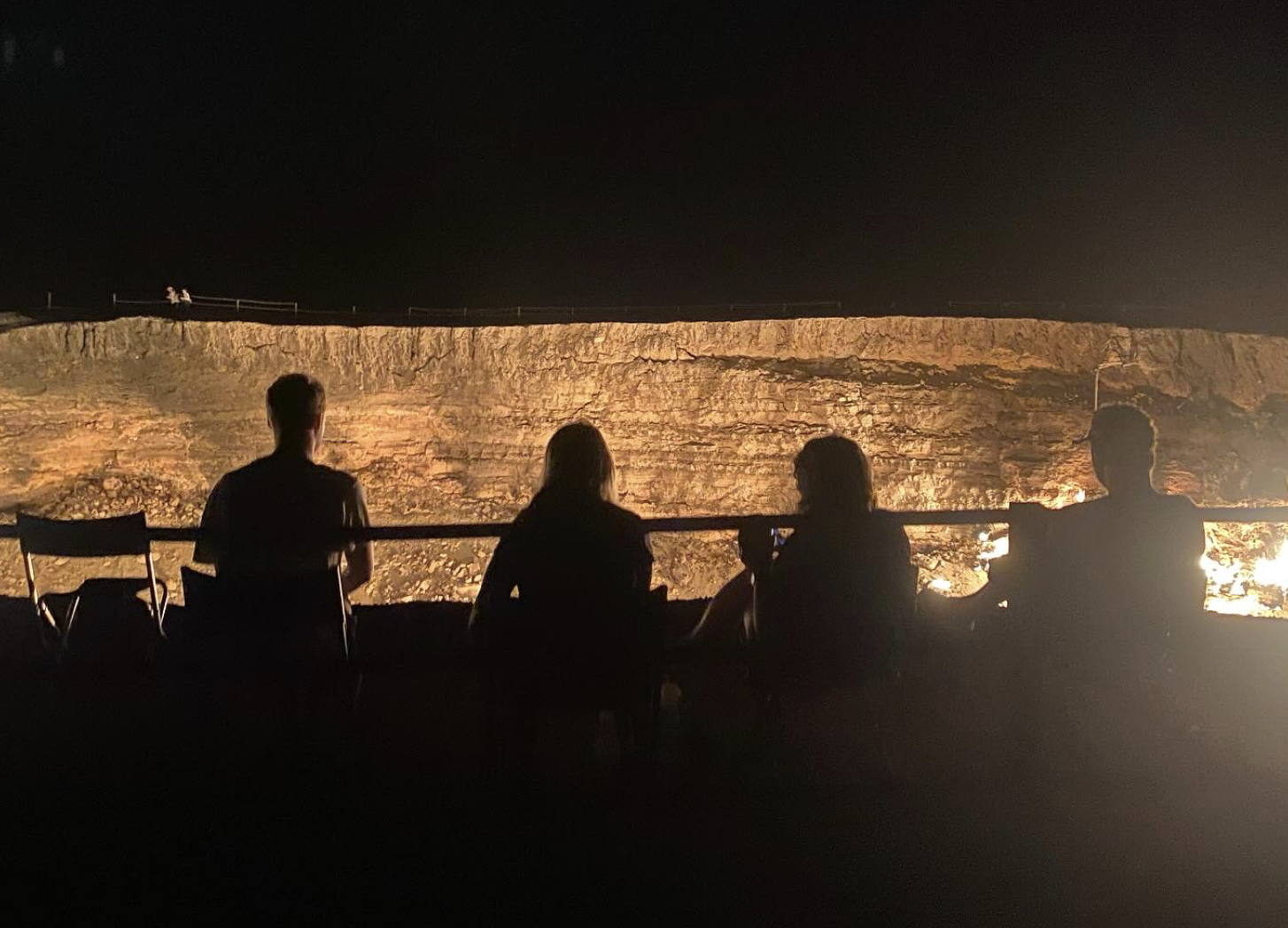 "I was prepared for bad roads and nothingness, but wow. Once you are away from the city it’s pot holes the size of Mars and strange little Karakum Desert outposts. I mean, how could there be money left after building a city out of imported Italian marble! Our destination was a very infamous one and for some reason the country’s biggest draw. Basically this crater (along with one of mud and one of water) was created when some Soviet gas exploration went wrong. The gas crater was set alight and simply never stopped burning. It is often referred to as the Door to Hell or Gates of Hell. It was pretty underwhelming in the light of day but whoa it did light up the sky at night (as did the stars). Truly spectacular. Also the camp was teeming with hedgehogs!! So cute. Worth the effort to come here especially as it won’t be around much longer. (We also played in some dunes, saw many camels and got very covered in desert)."