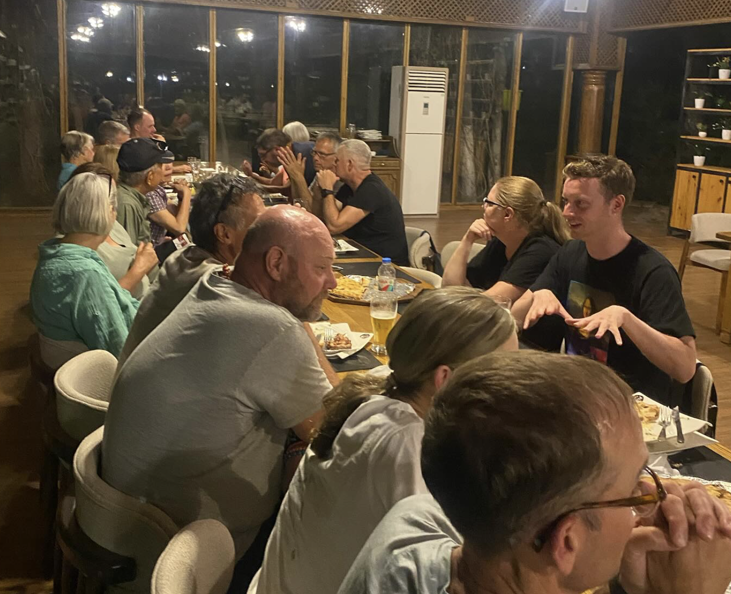 "It is after all one of the least visited and most secretive countries on earth. Briefly, Turkmenistan is a natural gas and oil rich country that gained independence after the collapse of the Soviet Union and self proclaimed Turkmenbashi (head of the Turkmen) became its first leader. You may have heard some of the infamous stories such as changing the names of the days of the week, months and even a camel breed to names of himself and his family members or the daily public reading of his self written moral guide/holy book, the Rukhnama, or building an entire city made of marble and gold or mandating every car in the country be white or….the list is endless. The cult of personality is very much on full display in Ashgabat. I have never been anywhere like this. It is indeed a city of marble. everything is so wildly over the top and impeccably clean. It quite literally does not feel real. If you come here you will repeatedly ask yourself “what is this place??” That is not to say it’s unpleasant. It’s quite pleasant and has lovely cafes and restaurants, interesting markets, people (if you see any) are very nice, it feels safe and you can eat off the ground it’s that clean (street sweepers are apparently gifted “elite apartments” after time). It is also very clear we are no longer in Iran and in the land of copious amounts of vodka. Today we welcomed back those who opted to skip Iran and brought 9 new people into the fold! Our small truck family very quickly doubled in size! A really great group dinner out with our fantastic guide Michael ended our first day in the country. Much like the country, I don’t have words to describe Michael! Absolutely hilarious, vodka swilling man who loves his country and sure made it fun to be there. More on Ashgabat in the next post."