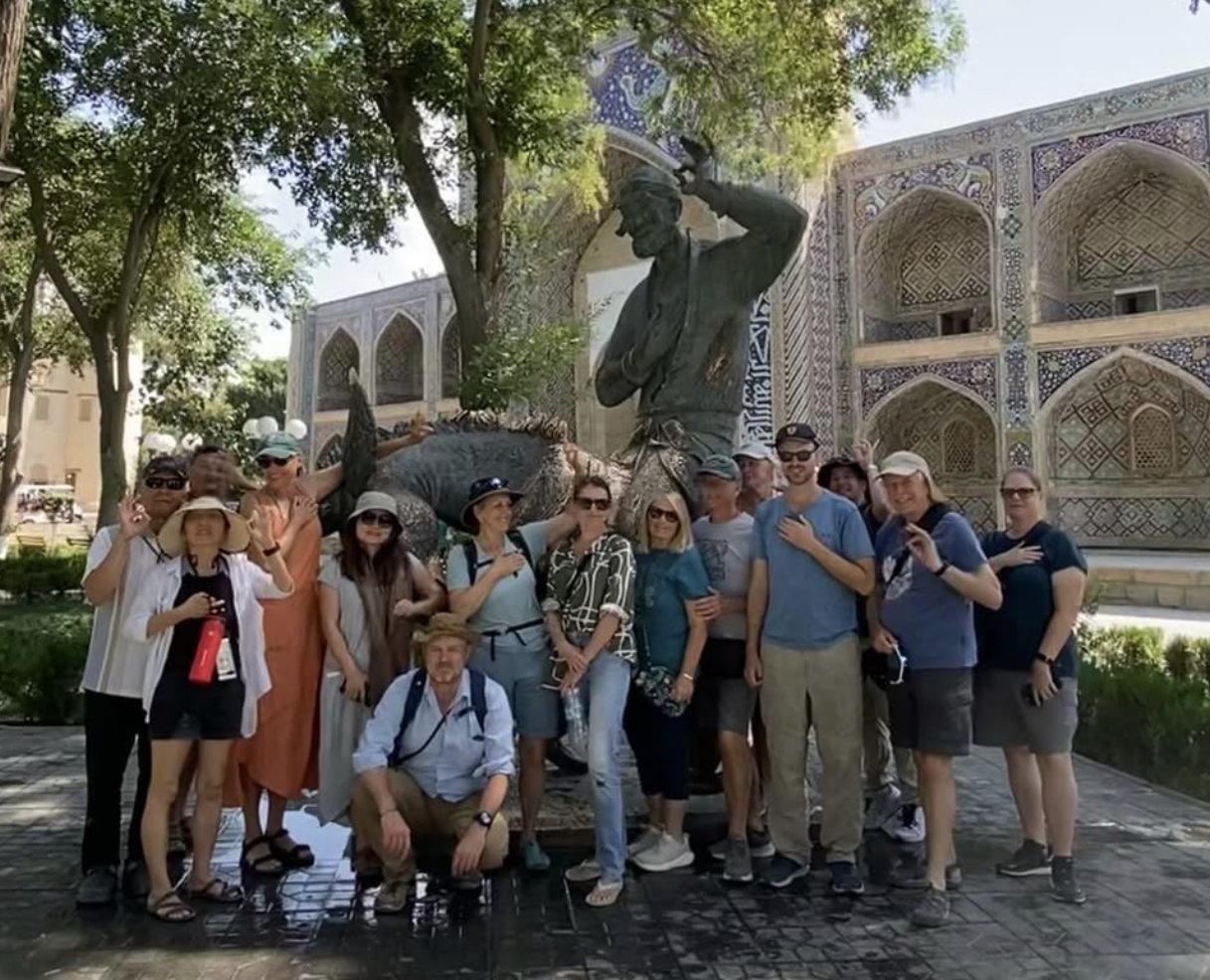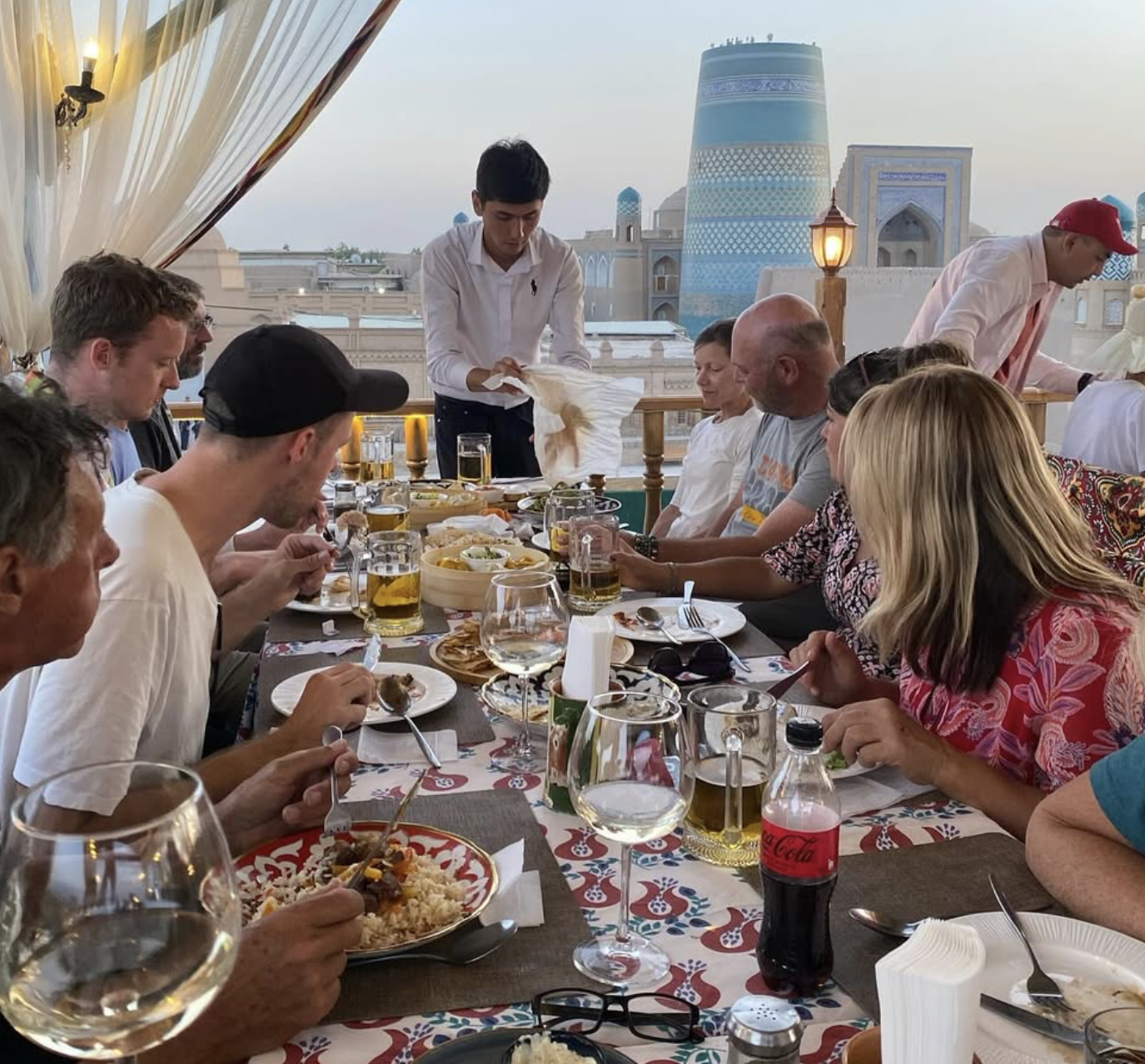 "We visited a couple more castles this morning and had our first bogging! Everybody did a great job pitching in and we were back on the road in no time! Khiva is a magical place to be. Another instance of feeling you’ve stepped back in time to a living, breathing Silk Road city. It has been a couple of years since I’ve been to this part of the world and these places hold such big memories for me. I wasn’t sure how I was going to feel to be here and am very happy to say it feels good. I truly love this part of the world. Bonus: unlike last time, the temperatures in Khiva were manageable making it extremely pleasant. We had our last new person join us here so of course that meant a group dinner at the restaurant with the best view in town. We will leave with 23, an almost full truck as we continue traveling through the larger than life Uzbek cities of the ancient Silk Road."