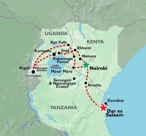 Trek to see the mountain gorillas, swim with dolphins or relax on sandy tropical beaches. Add in a few adrenaline activities such as bungy jumping, white water rafting or quad biking along with stunning gameparks such as the Maasai Mara and Etosha will make this a trip to remember.
